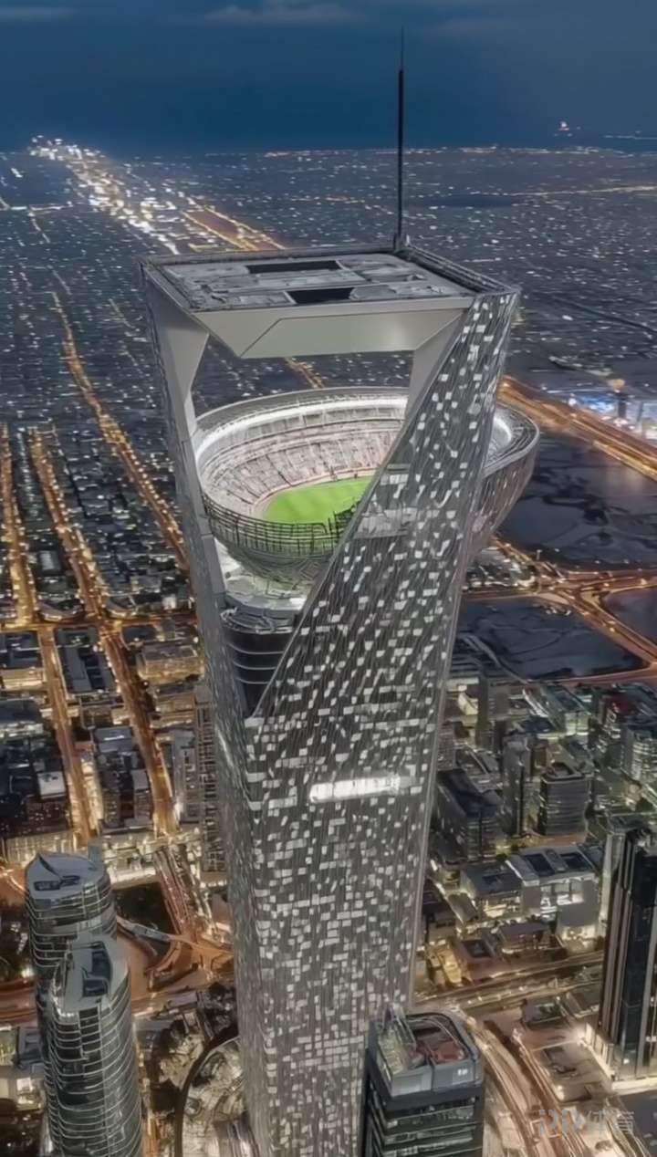 沙特350米高空,摩天大楼球场是AI生成,视频成本3元